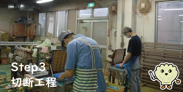 不良仕分け きず、曲がっている、かけている等のチョークは取り除きます。不良は☓迷ったときは△の箱に入れます。☓にのチョークは粉にして原料で使います。△は責任者の品質指導のサンプルとして使用します。 |
