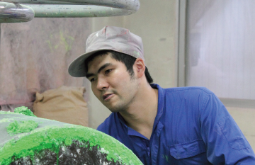 職人技 マニュアルでは設定が難しい部分です。 混錬工程の社員が気候を読み取り水分調整をしています。 |
